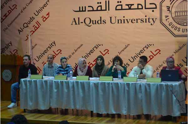 Addressing Gaza’s audience via Skype, Franklin spoke of the significance of writing as a collective as well as individual act, in addition to the importance of writing and narrating especially in the U.S, where pro-Palestine academics are being harassed, adding that “in “Life in Occupied Palestine,” contributors’ writings testify to how narrating stories about Palestinian lives becomes a political and collective act as well as a deeply personal and individual one. Life narratives can challenge as well as support the Zionist project that normalizes its practices of denying and erasing the existence of Palestinians. In the United States, as is true elsewhere, attacks on academics and public intellectuals for their alleged anti-Jewish sentiments and uncivil behavior do not only limit their civil rights and free speech. Stories about these uncivil individuals also serve to silence or distort the challenges they pose to dominant US narratives that render Palestinians as non-existent, or as terrorists. The quelling of free speech in the United States, in other words, works in tandem with Israel’s human rights violations against Palestinians.” She clarifies that the Palestinian narrative, the emergence of a new generation of Palestinians is longer in short supply, yet it is being suppressed by the mainstream channels, “both the narratives that circulate, and also those that are silenced or censored—after all, Palestinian narratives are in no short supply, they just get suppressed in mainstream channels—are key to the dehumanization of Palestinians upon which the Israeli state depends.”